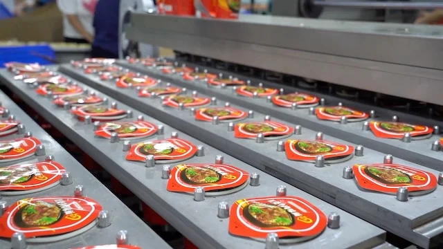 It can produce 2.7 million bags of noodles a day, 1 million cups a day and 140,000 barrels a day